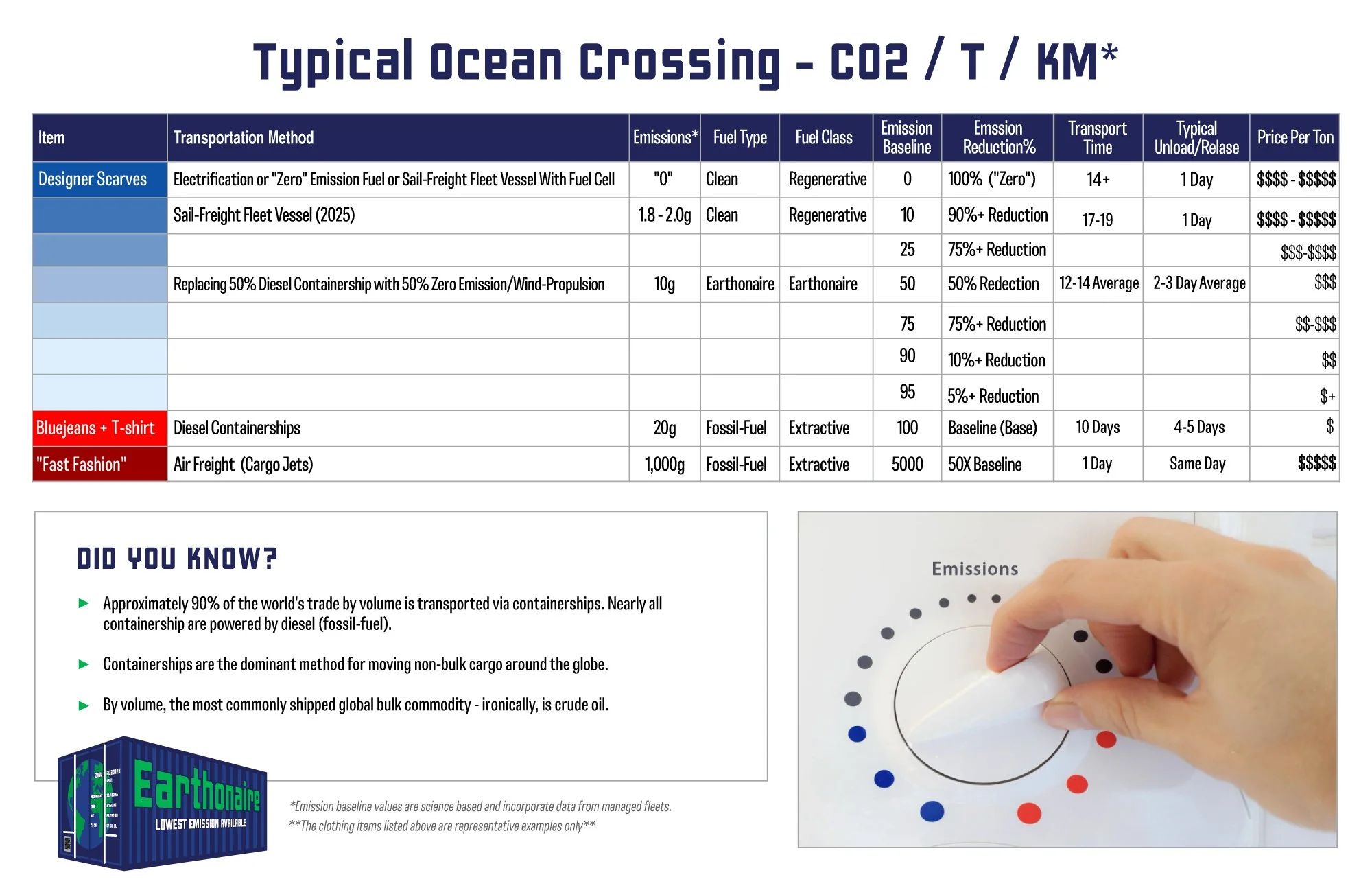 Our typical client ships 1,000+ TEU annually on diesel-fuel powered containerships (99.9% global ocean freight market share). Earthonaire integrates lowest emission available TEU contracts to meet our client’s internal emission reduction targets. Typical annual container emission reduction targets range from 10%, 20%, 50% or 90%+ company wide for a 3-5 year term. Additionally, Earthonaire offers single or multiple TEU for clients exploring measurable fleet-wide Scope 3 emissions reductions. We are advance contacting lowest emission available shipments for Q4 2025, 2026-2029 and 2026-2030. Please view the inventory tab on our website. Accomplish your scope 3 emission reduction goal with Earthonaire.